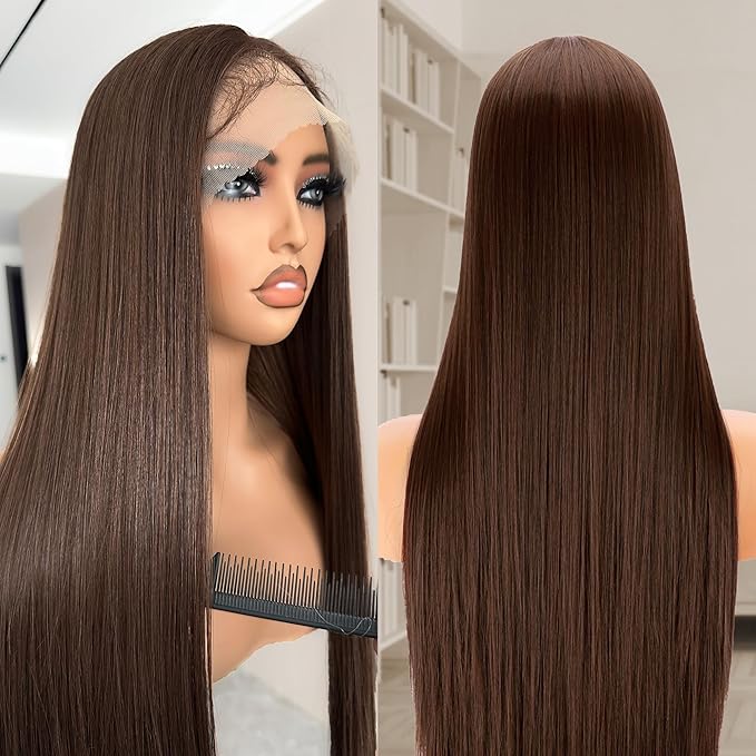 Chocolate Wig Auburn Chocolate Brown 30 Inch Glueless Lace Front Wigs Pre-Plucked Straight Hair HD Lace Wig (Light Brown, 30 Inch)